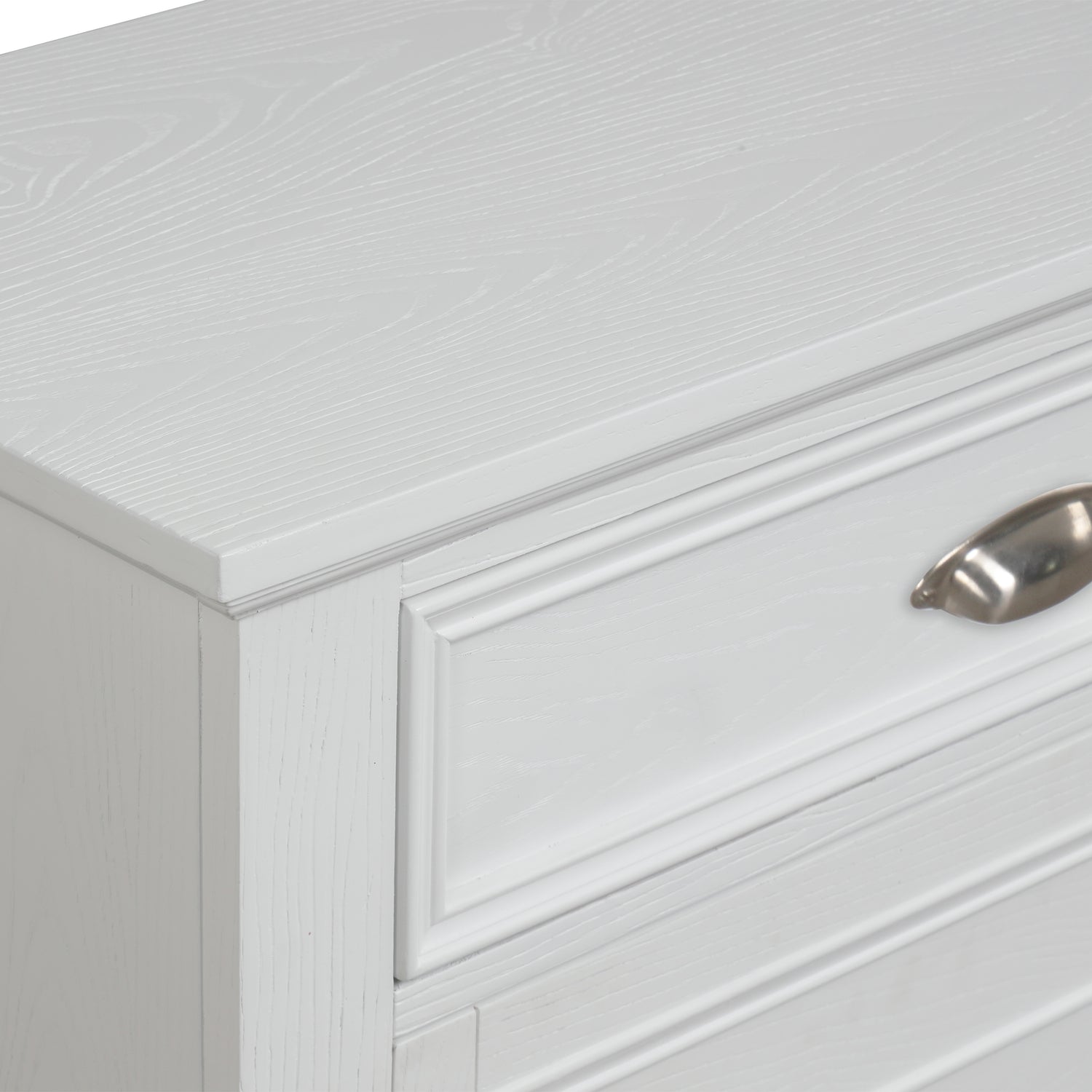 The Jamestown Wood Nightstand in White combines durability, style, and functionality to complement any bedroom decor. Expertly crafted from solid Acacia, premium manufactured woods, and authentic Oak veneers, this nightstand is built to last while maintaining the natural elegance of real wood. The Jamestown collection embodies modern coastal charm with its clean lines and crisp, brushed white finish, bringing a serene, beach-inspired ambiance to your space. The nightstand offers generous storage, featuring a spacious drawer with finished interiors to prevent snags, and a large storage area concealed behind an elegant paneled door. Thoughtfully designed with clean lines and sophisticated detailing, this piece blends practicality with style, enhancing the overall ambiance of your room. The drawer operates smoothly on robust full-extension glides, with meticulous dovetail joinery inside, ensuring reliable operation and enduring quality. This nightstand is a chic and functional addition to any bedroom, offering both elegance and practicality.