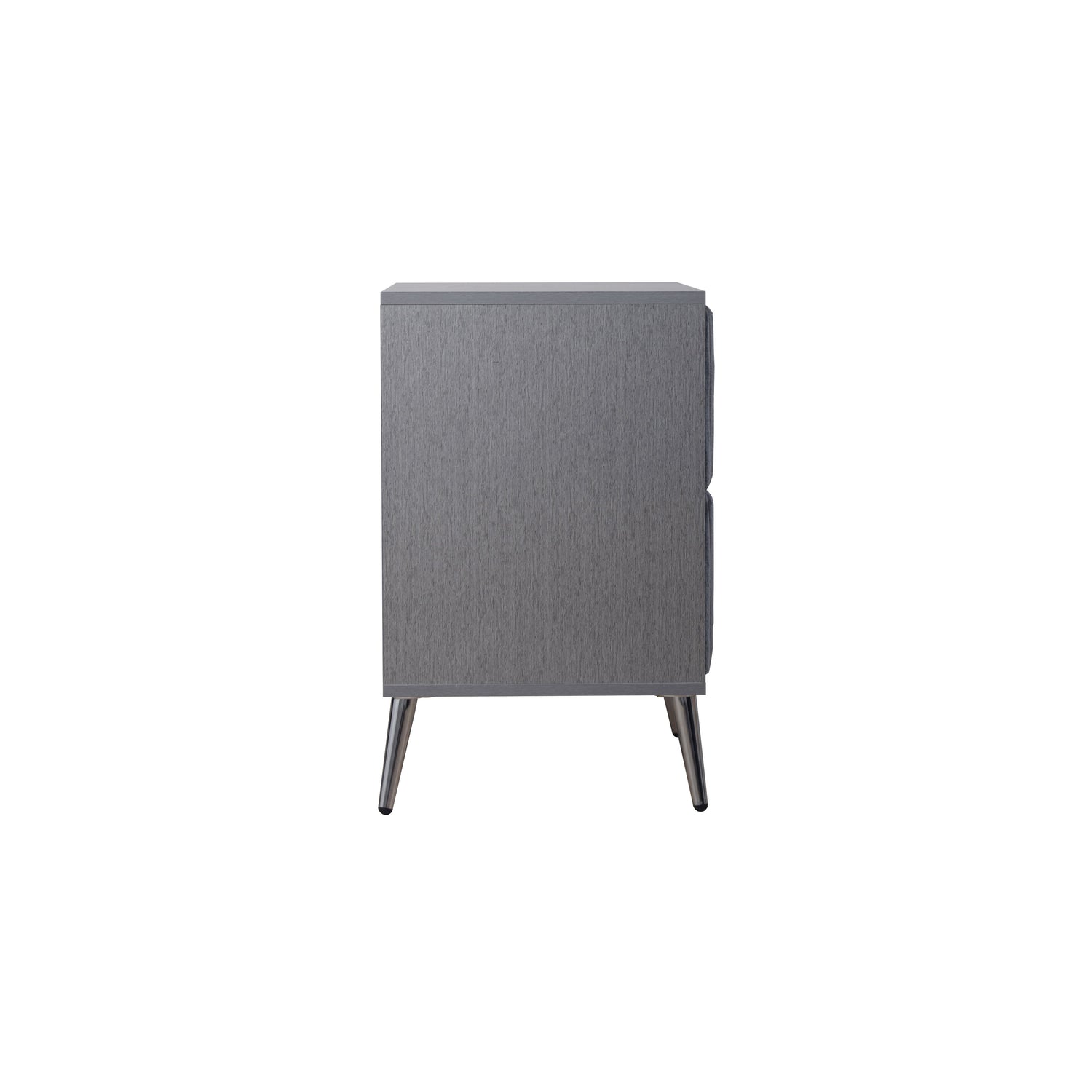 - Modern Minimalist Design: Featuring clean lines, a sleek silhouette, and a chic ribbed texture, this 2 drawer Nightstand embodies modern minimalist elegance. The slim, metallic handles and tapered legs not only enhance the contemporary aesthetic but also provide durability and ease of use, adding a sophisticated yet functional touch to any bedroom decor.