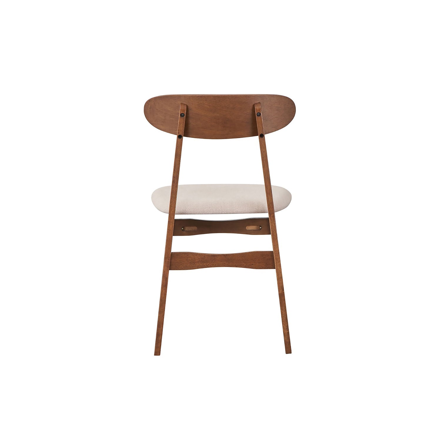 The New Classic Morocco Dining Chairs are a picture of Mid-Century Modern design with tapered legs, curved oval seatbacks, and classic walnut brown color. Easy care, natural 100% polyester foam cushions provide comfortable seating. A perfect accent chair in any room.