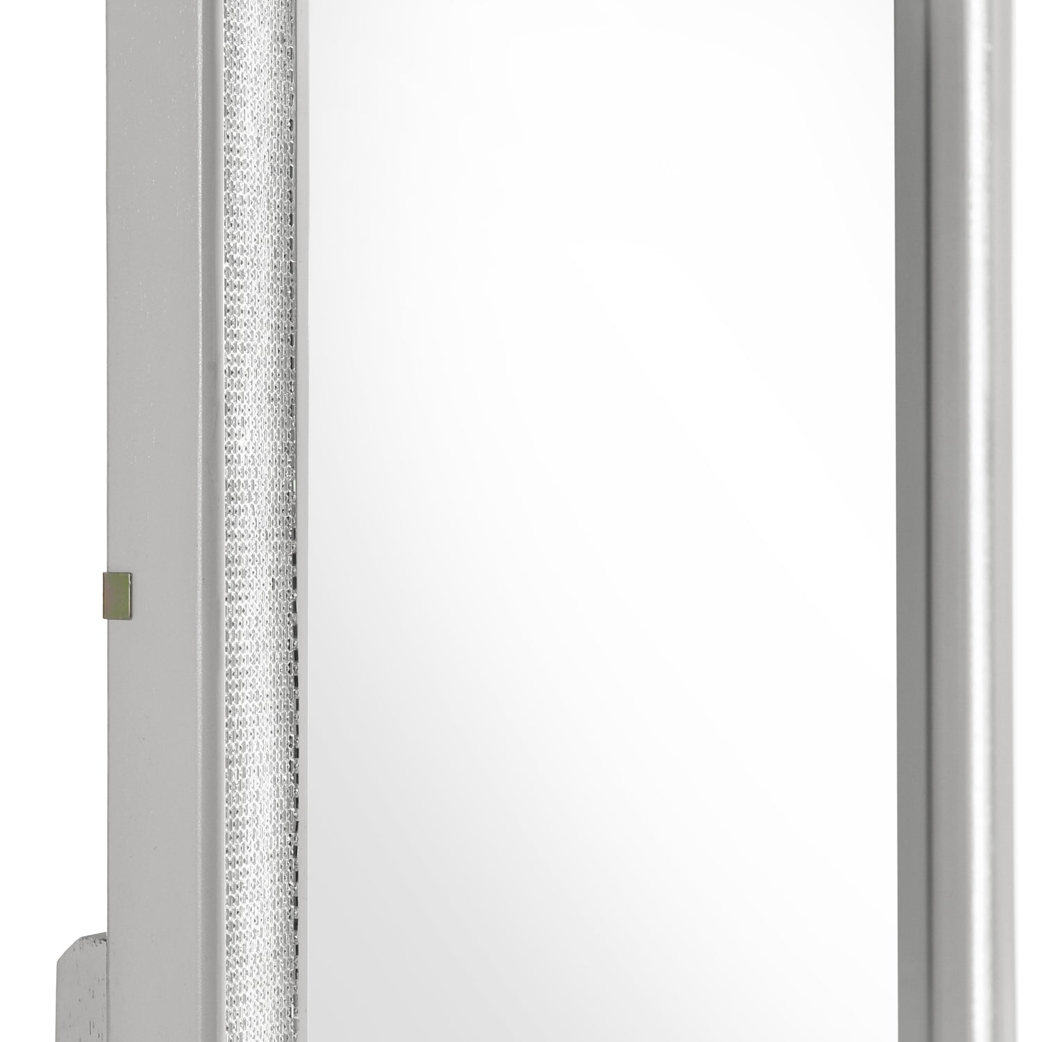 - Sleek White Finish: The contemporary white finish is accented with a dose of glam provided by glittery silver accents.