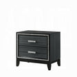 • Classic design with touches of modern aspects makes this Haiden Nightstand ideal for any bedroom. The piece offers a rectangular tabletop and two storage drawers for displaying or organizing. It also features a glamorous shimmering silver accent trim that adds richness to design. The drawer handles with the same shimmering silver tie them all together to create a cohesive look. The black finish makes it easy to fit into already existing decor.