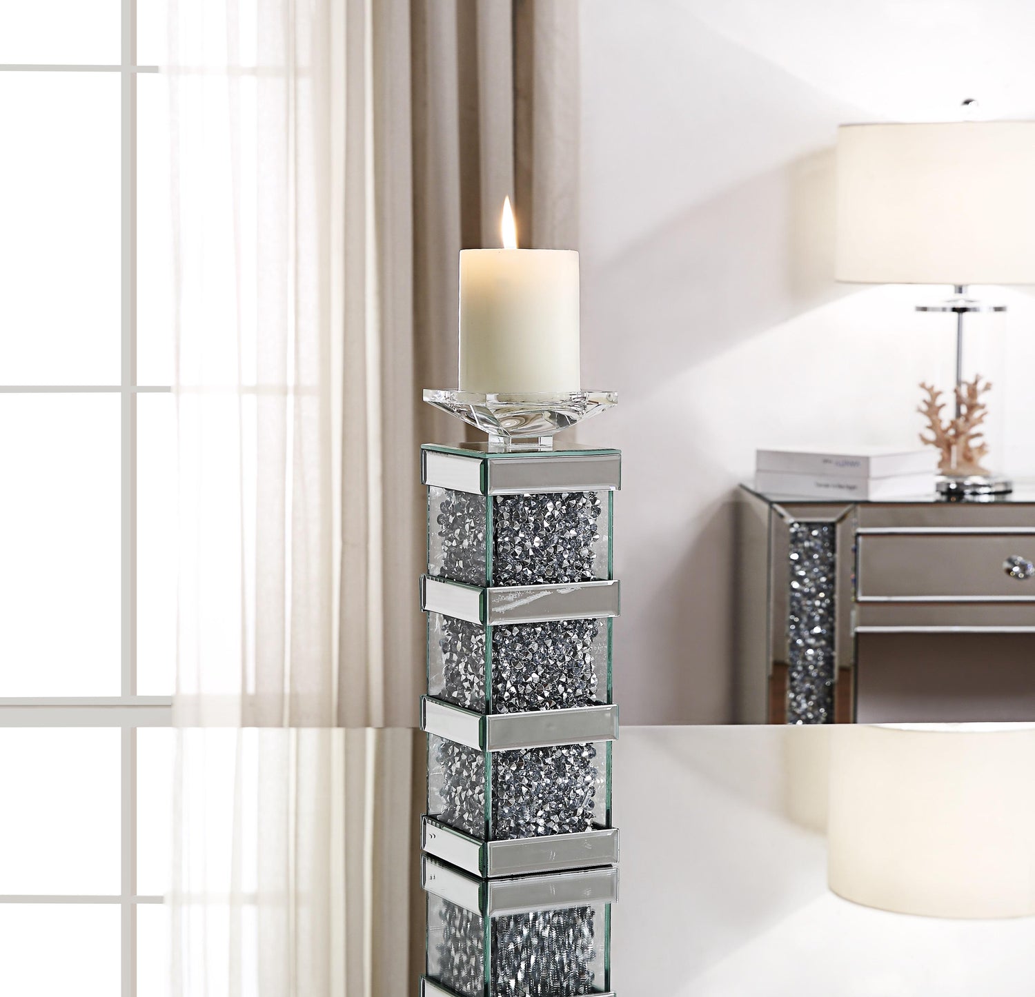 Noralie Mirrored & Faux Diamonds Accent Candleholder