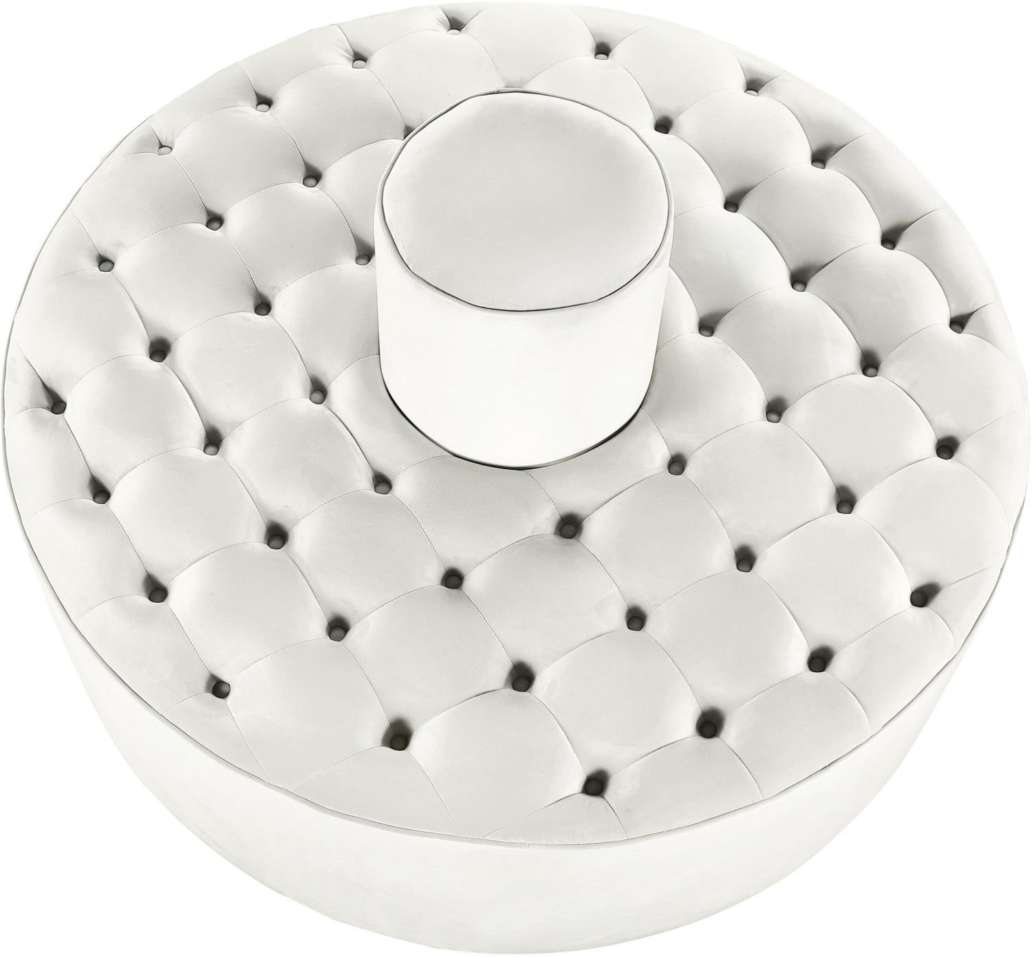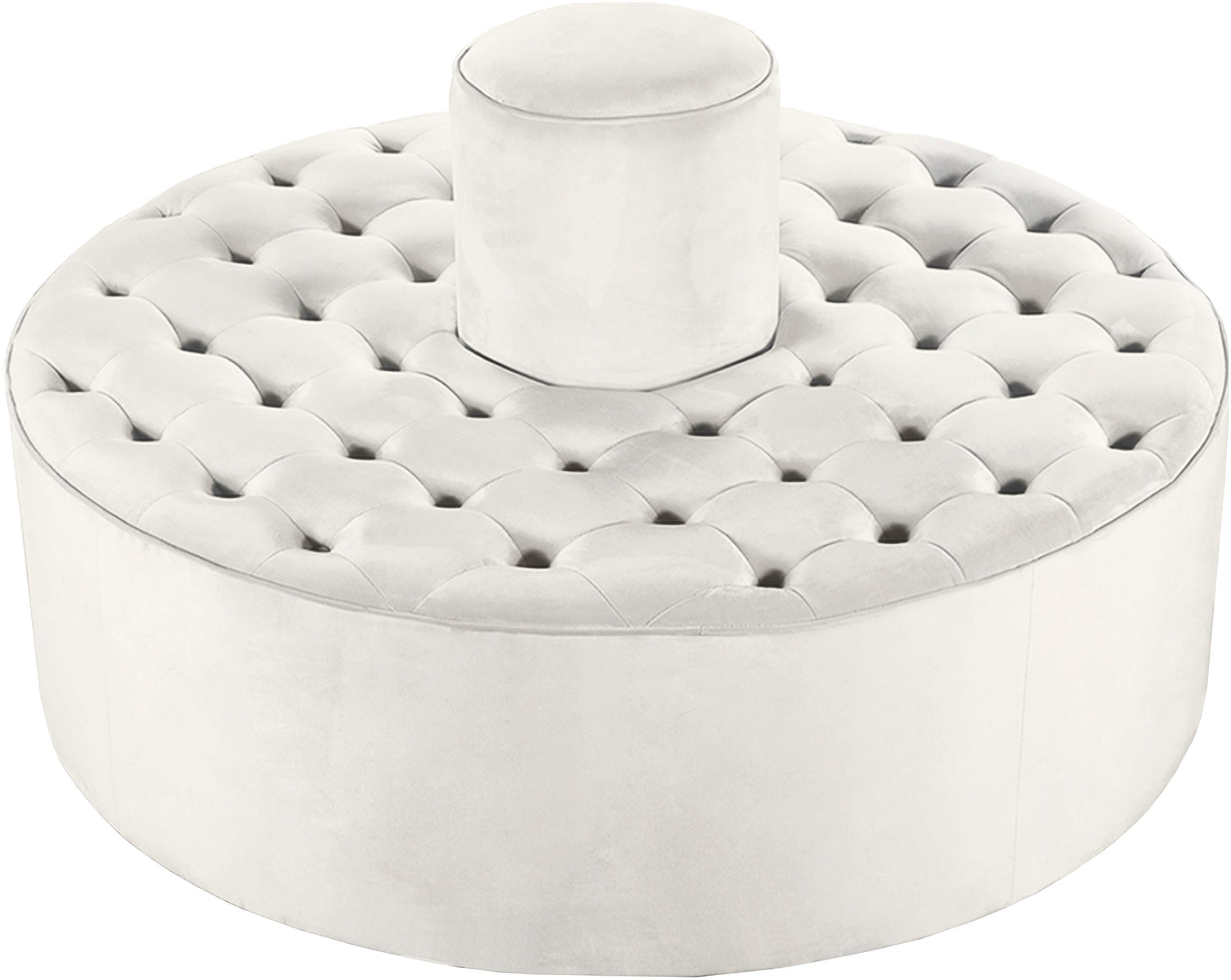 Infuse your space with modern style when you bring home this Banquet Cream Velvet Roundabout ottoman/bench combo from Meridian Furniture. This elegant accent provides the perfect spot for propping your feet up after a long day at the office, or put it to work as impromptu seating when you have company over. The chic and contemporary upholstery, and deep tufting on the top gives this piece a sumptuous feel while keeping the ottoman's cushion aloft for a luxe look.