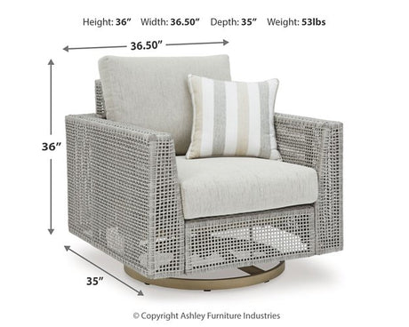 - Chair with 360-degree swivel, gentle gliding motion and throw pillow