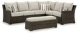 Relax. Refresh. Refine your outdoor oasis. This sectional and bench master high style with beautiful simplicity. High-performance fabric, warmly neutral hues and all-weather durability invite everyday use. From getting sun-kissed in the summer to chilling with cocoa in the winter, their cushioned comfort makes outdoor living all the more enticing.