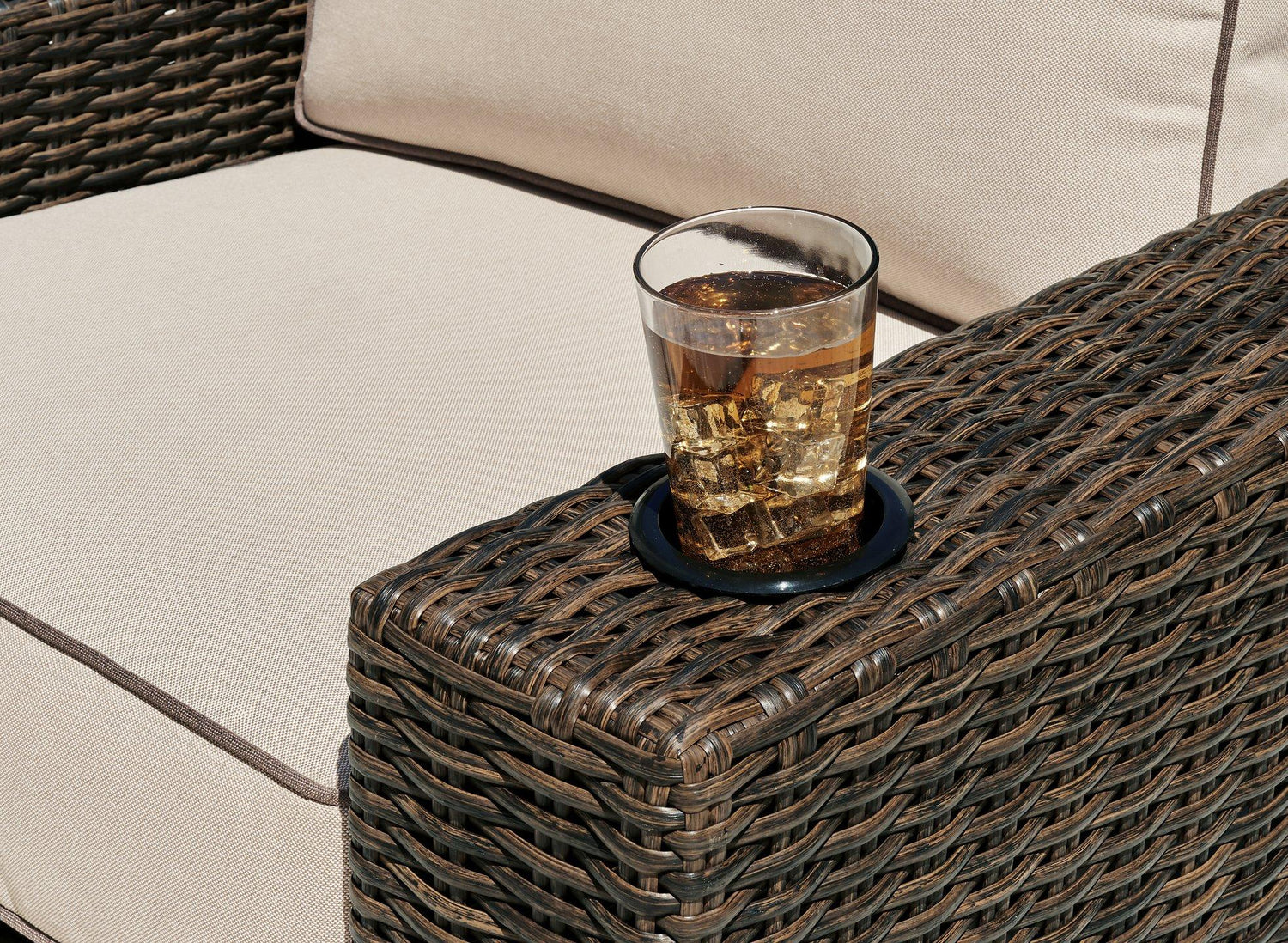 - All-weather resin wicker handwoven over rust-free aluminum frame