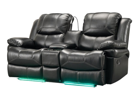 New Classic Flynn Power Console Loveseat (Lights) in Premier Black