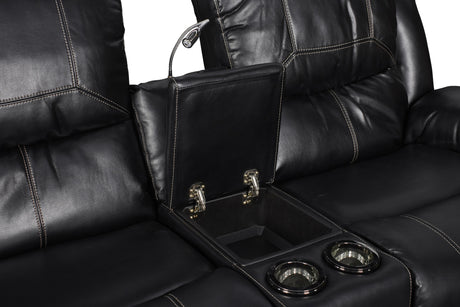 FLYNN CONSOLE LOVESEAT W/READING LIGHT, PWR FR- BLACK