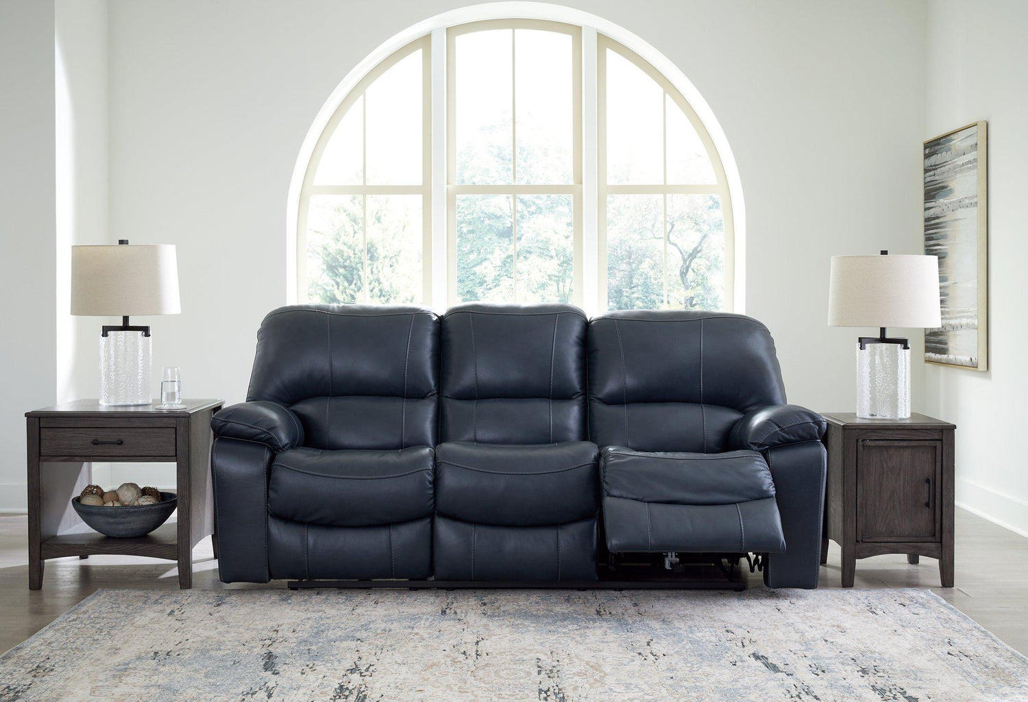 Focus on function. This practical power reclining sofa balances contemporary character and irresistible comfort. Its affordable, expertly matched leather and faux leather upholstery keeps your style up to speed without breaking the bank. Reclining with the touch of a button, this piece plays well in relaxed, luxe seating areas made for quality time.