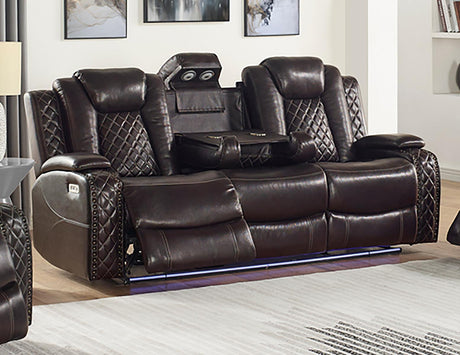 New Classic Furniture Joshua Sofa with Power Headrest and Footrest in Dark Brown