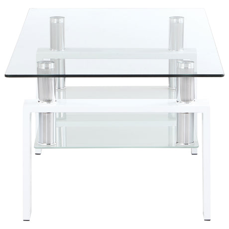 This rectangular sofa table features a clear tempered glass top and a frosted tempered glass shelf for additional storage or display. Supported by a durable metal frame, the console table boasts a modern and sleek design that fits seamlessly into contemporary living spaces. Its minimalist aesthetic combines functionality with style, making it an ideal piece for your home or office.
