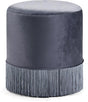 Bring a touch of romance to your space with this frilly Teddy Grey Velvet Ottoman/Stool. A fringed border of tassels surrounds the bottom perimeter of the stool, giving it a somewhat Bollywood-inspired vibe. The stool itself is upholstered in velvet for a posh feel and sumptuous look wherever you choose to use it. Put it in the living room as a fun and exciting accent and prop for your feet, or use it in the bedroom for a bit of boudoir inspiration.