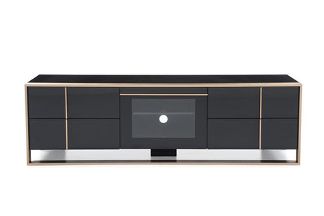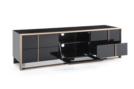 J&M TV047 TV Stand in Black High Gloss & Walnut