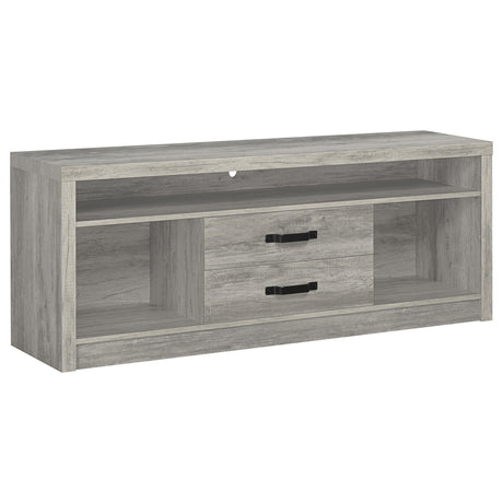 Burke 2-door TV Console Grey Driftwood is backordered and will ship as soon as it is back in stock.