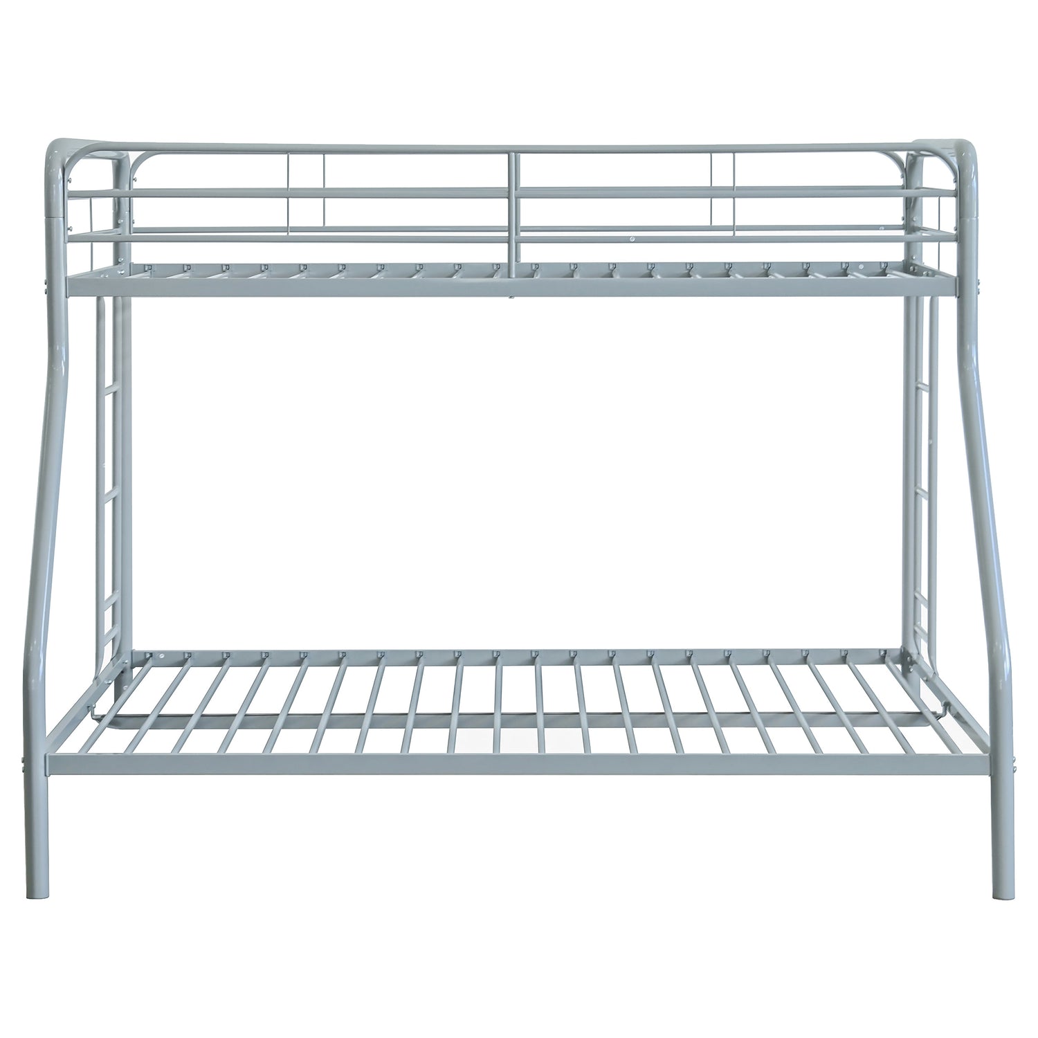 Maximize sleeping space with this modern metal bunk bed, designed for strength, safety, and everyday functionality. Its powder-coated glossy finish enhances the sleek silhouette, while full-length guardrails on the top bunk ensure secure rest. A built-in ladder provides stable access, integrated directly into the frame for a clean look and compact footprint. With metal slat support for both sleeping surfaces, this bunk bed eliminates the need for foundations and suits shared rooms with style and durability. Key Features: • Twin-over-twin bunk bed in glossy black powder-coated finish with clean, modern lines • Top bunk includes full-length guardrails for added safety and secure sleeping space • Angled built-in ladder allows easy access to upper bunk with a compact footprint • Metal slat system eliminates the need for a box spring or additional foundation • Space-saving vertical design ideal for shared kids’ rooms, dorms, or sleepover setups • Crafted from durable metal for everyday strength and long-lasting performance