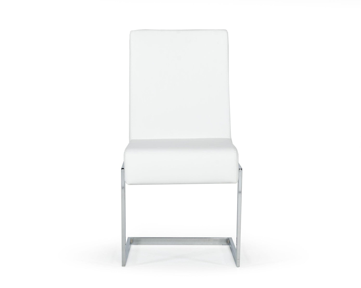 Available in white or light grey, the Batavia Tall Dining Chairs are simple and classic. Perfect for your dining area, they will go with anything and last for several style changes to come. The white or grey leatherette upholstery is sturdy and soft while the c-shaped stainless steel exposed frame base is supportive while also giving the illusion of floating.