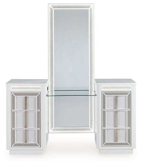 Evangeline 4-drawer Vanity Table with Faux Diamond Trim Silver and Ivory