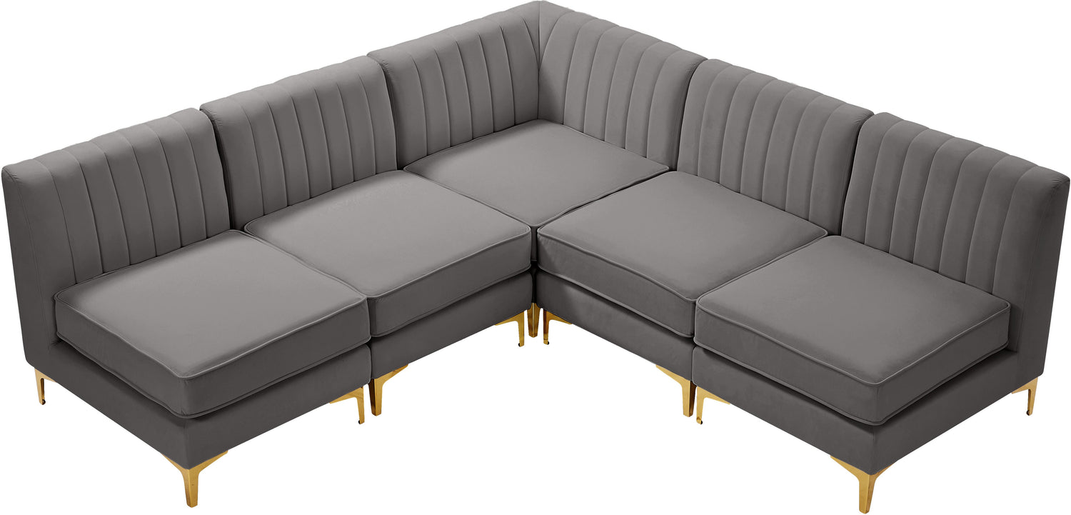 Alina Grey Velvet Modular Sectional is backordered and will ship as soon as it is back in stock.