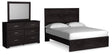 With its clean-lined look and modern attitude, this bedroom package is a fresh style awakening. A warm charcoal hue over replicated oak grain easily complements other furniture finishes. Smooth drawer fronts with antiqued pewter-tone handles complete the aesthetic.