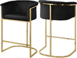 Complement your contemporary home furnishing with this Donatella Black Velvet Stool from Meridian Furniture. Its curved design and rich black velvet upholstery provides a comfortable, soft, luxurious seat for you to relax in, while also adding a touch of elegance to your living space. Its gold steel base adds the perfect balance to the stool's dark black color, in addition to holding the stool up to counter height and providing durable support for years to come.