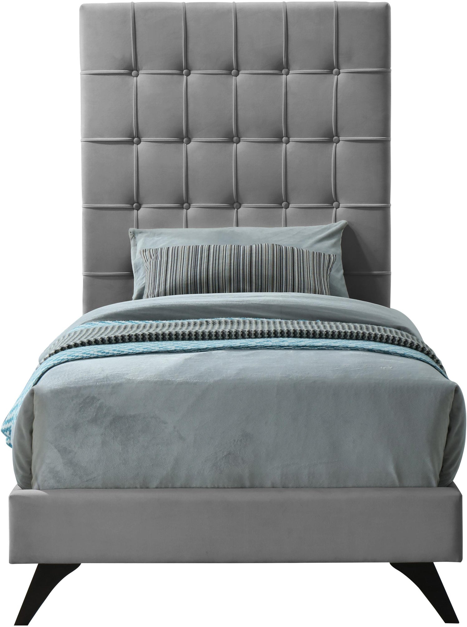 Elly Grey Velvet Twin Bed