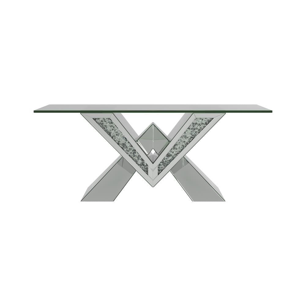 Taffeta V-shaped Coffee Table with Glass Top Silver is backordered and will ship as soon as it is back in stock.