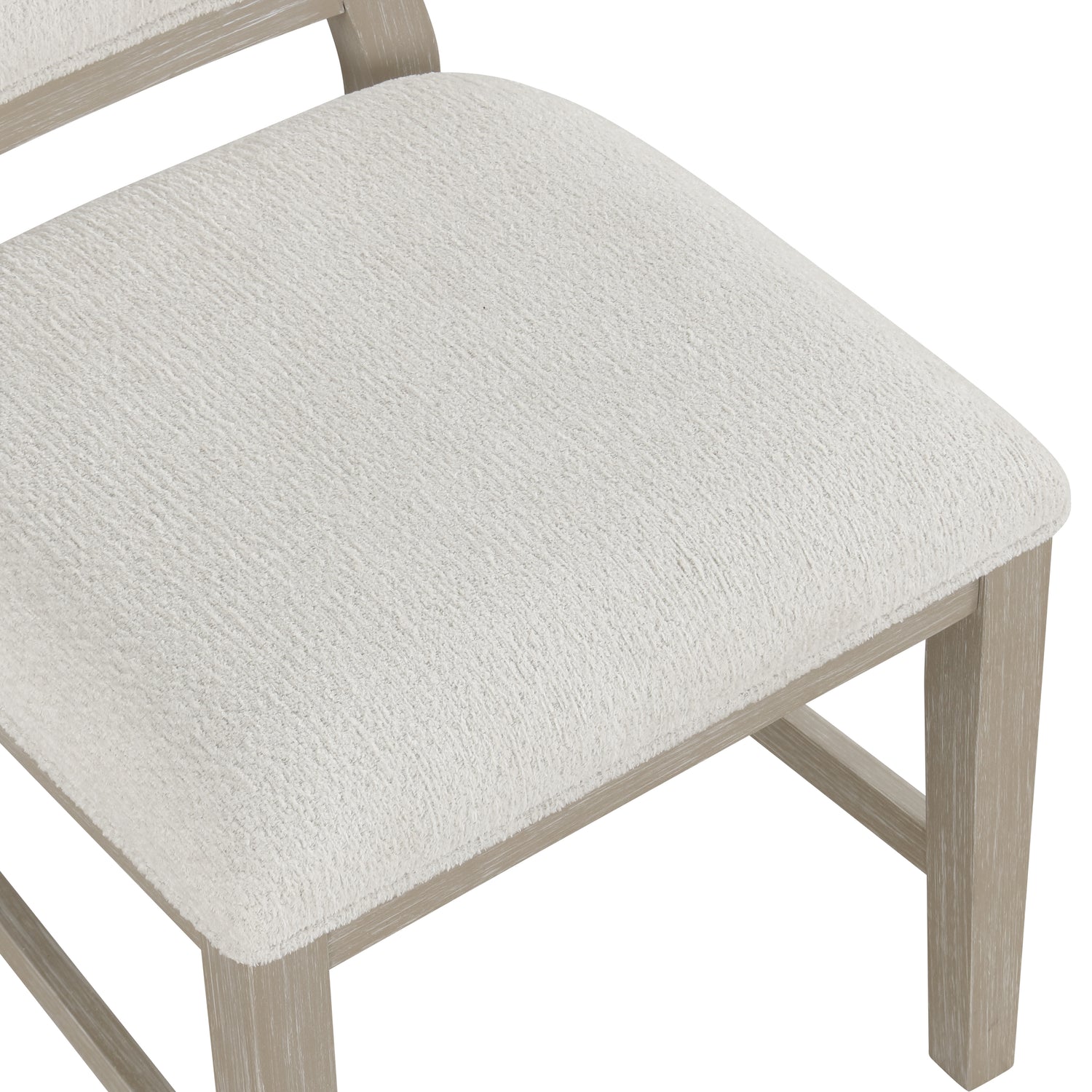 The Gwendolyn Dining Side Chairs (Set of 2) in Cerused Taupe blend style, comfort, and durability. Crafted from solid rubberwood and oak veneers, they feature padded seats, hourglass backs, and a sleek silhouette. The soft beige finish with enhanced grain offers a calming, versatile look that suits modern and transitional spaces—perfect for everyday dining with a touch of elegance.