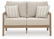 Hallow Creek Outdoor Loveseat with Cushion is backordered and will ship as soon as it is back in stock.