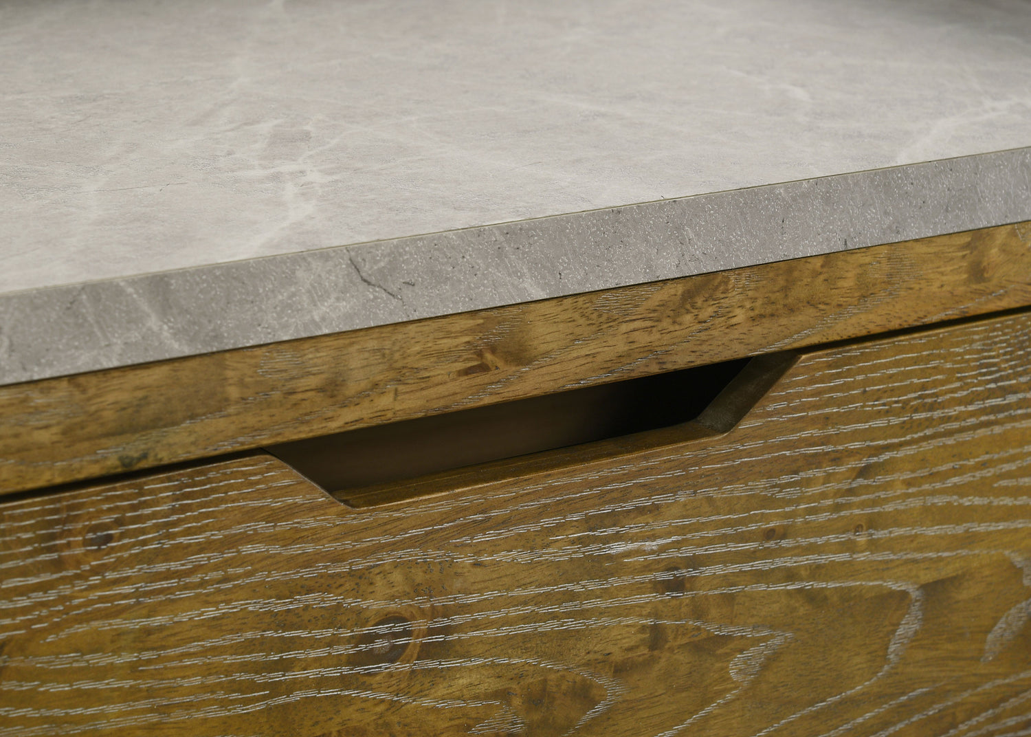 Blending natural warmth with clean-lined simplicity, this six-drawer dresser captures the best of rustic and contemporary design. Crafted from solid rubberwood and finished in a weathered medium oak, it features embossed wood grain surfaces that add character and depth. A faux marble melamine top introduces subtle contrast, while sculpted finger pulls and metal extension drawer glides offer seamless daily use. Key Features: • Six-drawer dresser offers a refined mix of rustic wood texture and modern function • Solid rubberwood construction with embossed oak grain in medium oak finish • Melamine faux marble top provides soft white and grey contrast • Fingertip drawer pulls offer minimalist access and clean-lined styling • Metal extension drawer glides ensure smooth, dependable performance • Fully assembled and includes tip-over restraint for added safety