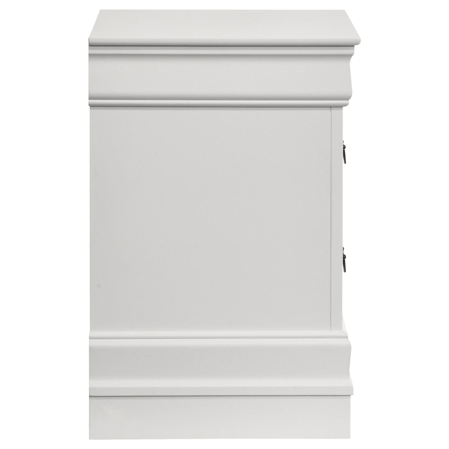 Add easy storage to your bedside with a stylish transitional two-drawer nightstand. In white, it's a versatile choice that complements a wide range of beds, linens, and surrounding decor. The nightstand offers a spacious top for a reading lamp and your phone, with drawers for overnights essentials. Each drawer is accented with a dark finish hanging pull and is built with a smooth metal glide for seamless performance. Molded trim and bracket feet complete the look, offering refined, understated style perfect for an approachable bedroom.
