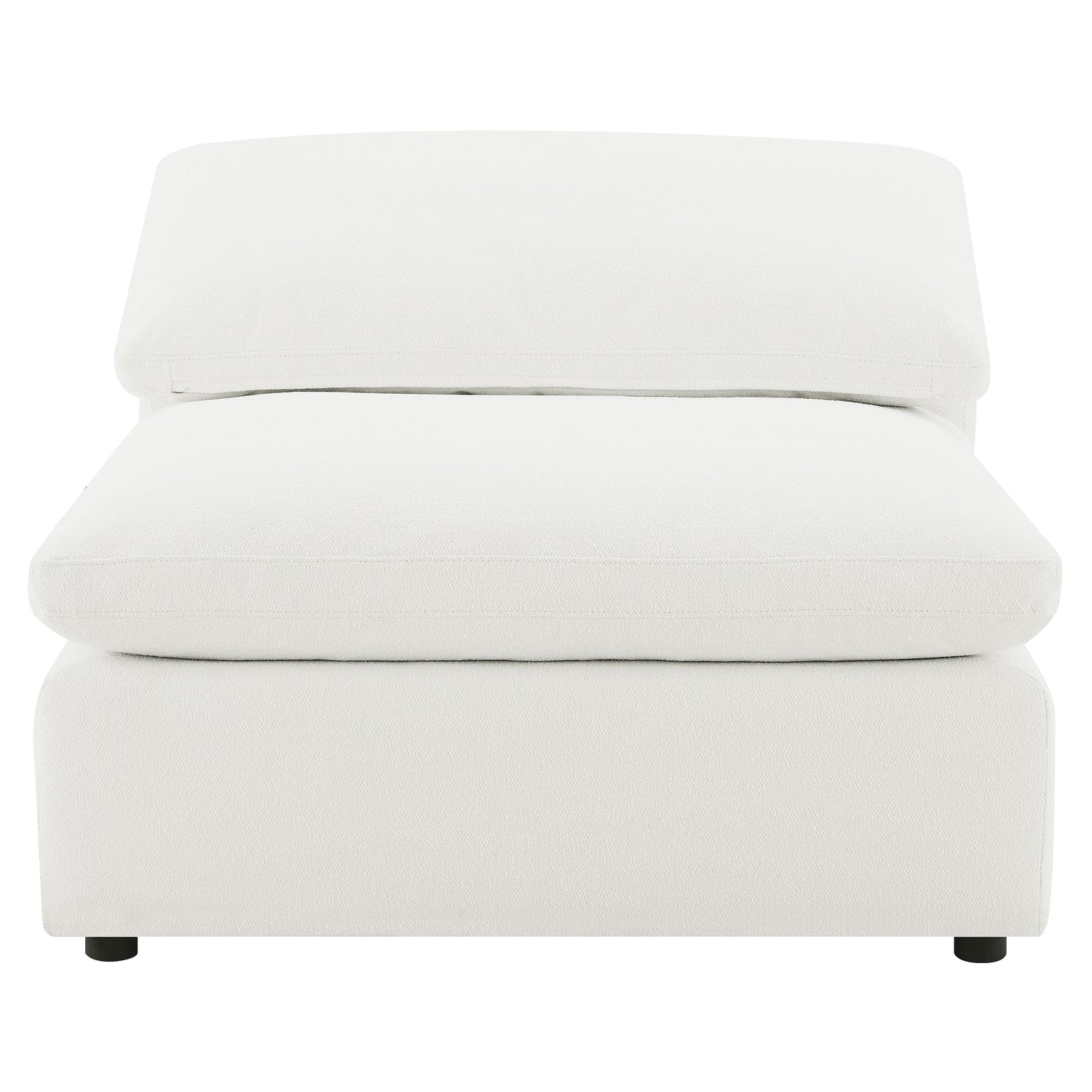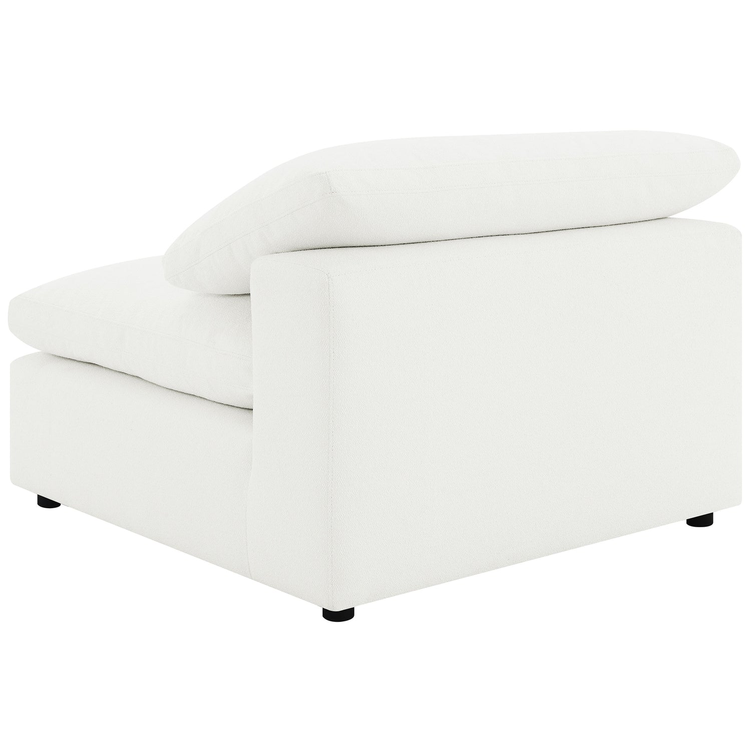Create the perfect configuration for your modular sectional with a modern armless chair. It features neutral water-resistant boucle upholstery for an on-trend look and feel that works in a wide range of living spaces. The armless chair connects with additional chairs or corners, creating a custom sectional setup in your living room. Foam cushions pair with feather blend for exceptional comfort and a plush feel you'll love when lounging. A loose pillow back completes the look.