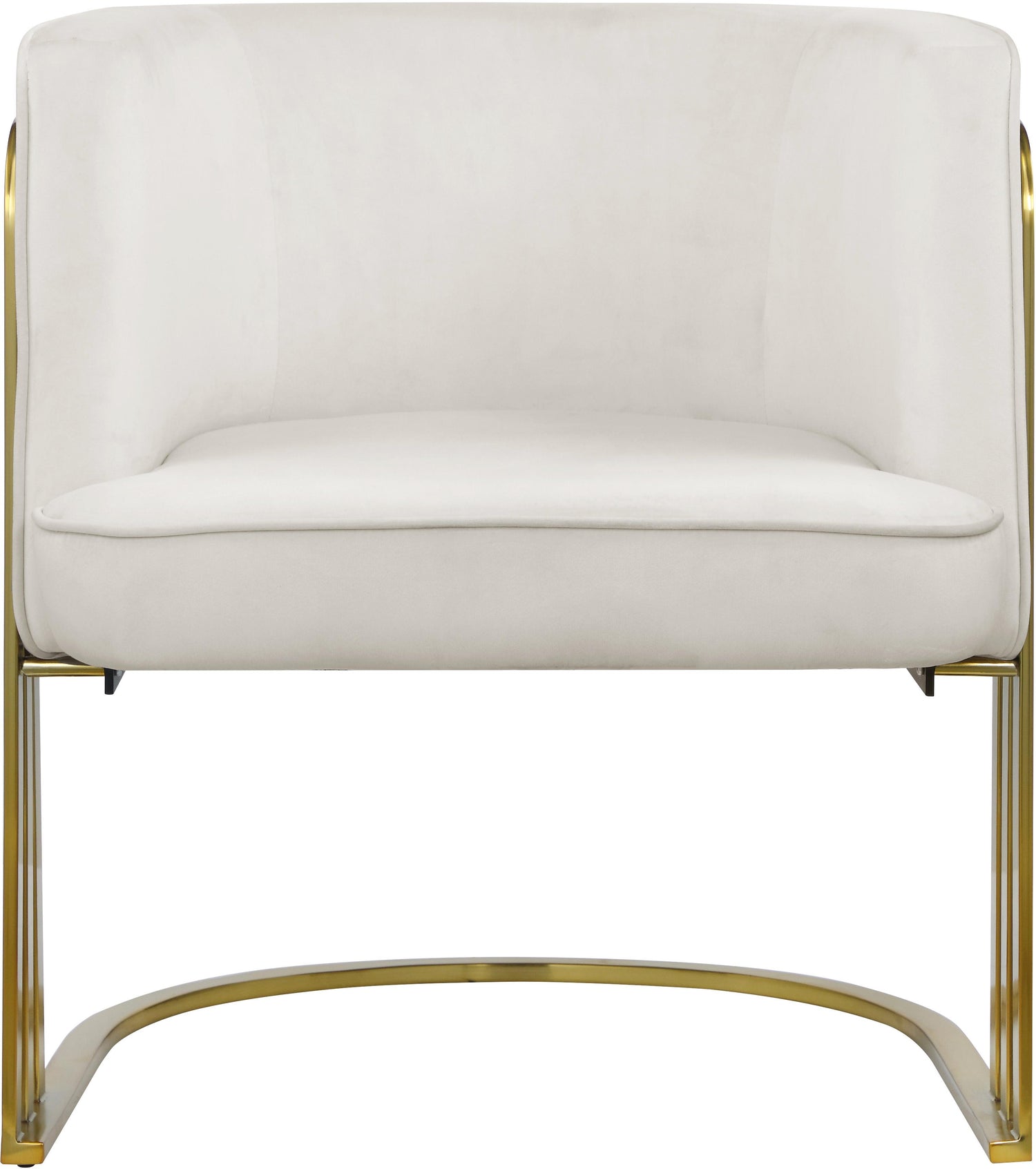 Set your interior space up for drama with this Rays velvet accent chair. This bold design is a guaranteed eye-catcher from any angle and in any room. The soft cream velvet upholstery adds to its upscale feel, and the brushed gold metal finish on the legs and frame drive home its contemporary feel. Place it in any room where you want to enjoy the best seat in the house.