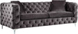 Sink into the welcoming comfort of this Scarlett grey velvet sofa. This sofa defines elegance and sophistication with its boxy retro look and its deeply tufted upholstery that covers every inch of the sides, back, and front. The grey velvet material feels luxurious to the touch while the chromed legs lend the sofa sturdy support and a modish finish. Pair it with other items in the Scarlett collection for a complete look.