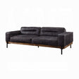 - Part of the handsome Silchester Collection, this modern industrial sofa set will look great in any contemporary space. Contrast stitching makes the antique ebony top grain leather upholstery pop, and highlights the warm color of the wooden trim base. Metal spindle legs visually lighten the substantial proportions of this sofa set. Enjoy wide track arms and comfortable feather and foam seat construction, and relax in style.